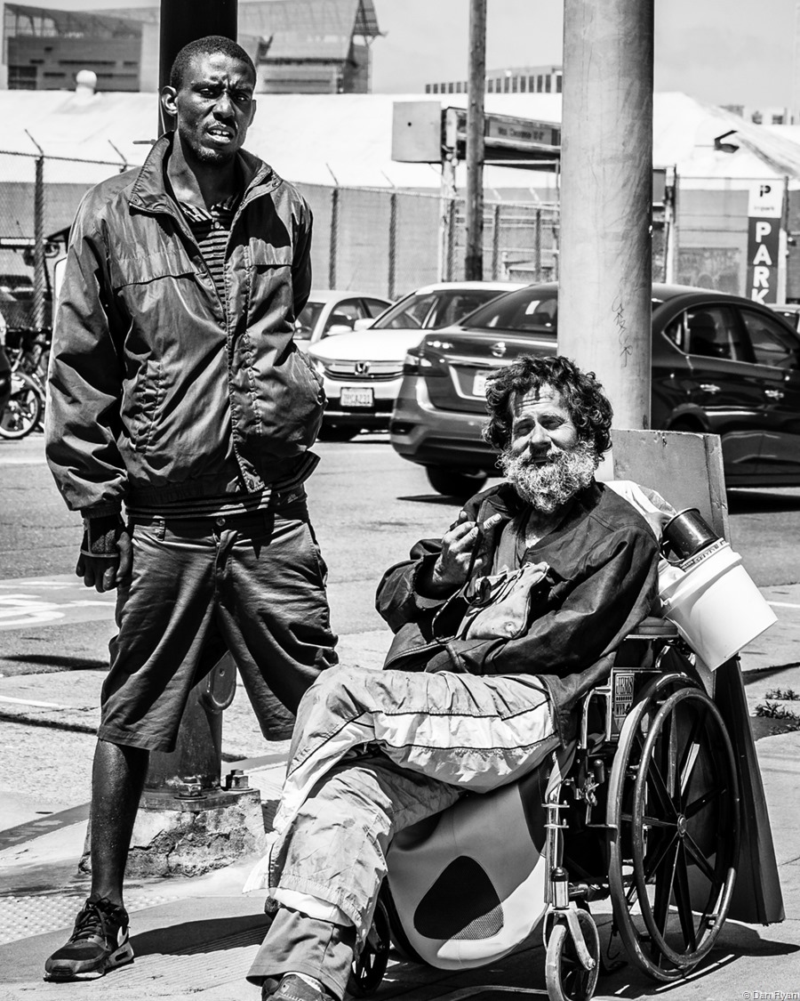 This is a short, simple story. I was on my way to my favorite discount supermarket in San Francisco when I encountered these three guys on the sidewalk at a bus stop, and a couple of the gents decided to smoke some meth.