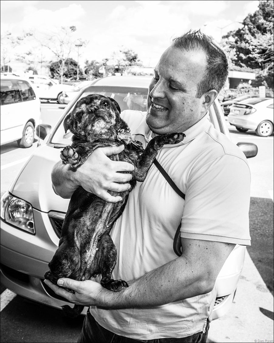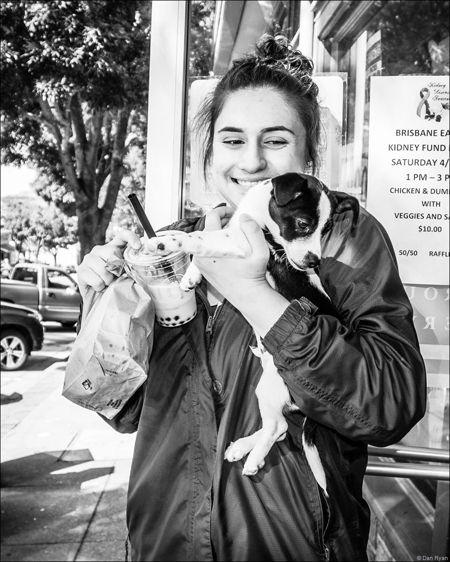 While running errands today, I stopped at Brisbane’s laundromat and grocery story respectively. This town loves dogs, and I’ve been shooting and compiling pictures of people with their dogs for a themed book I want to do. Here are two pictures I took today for that project…