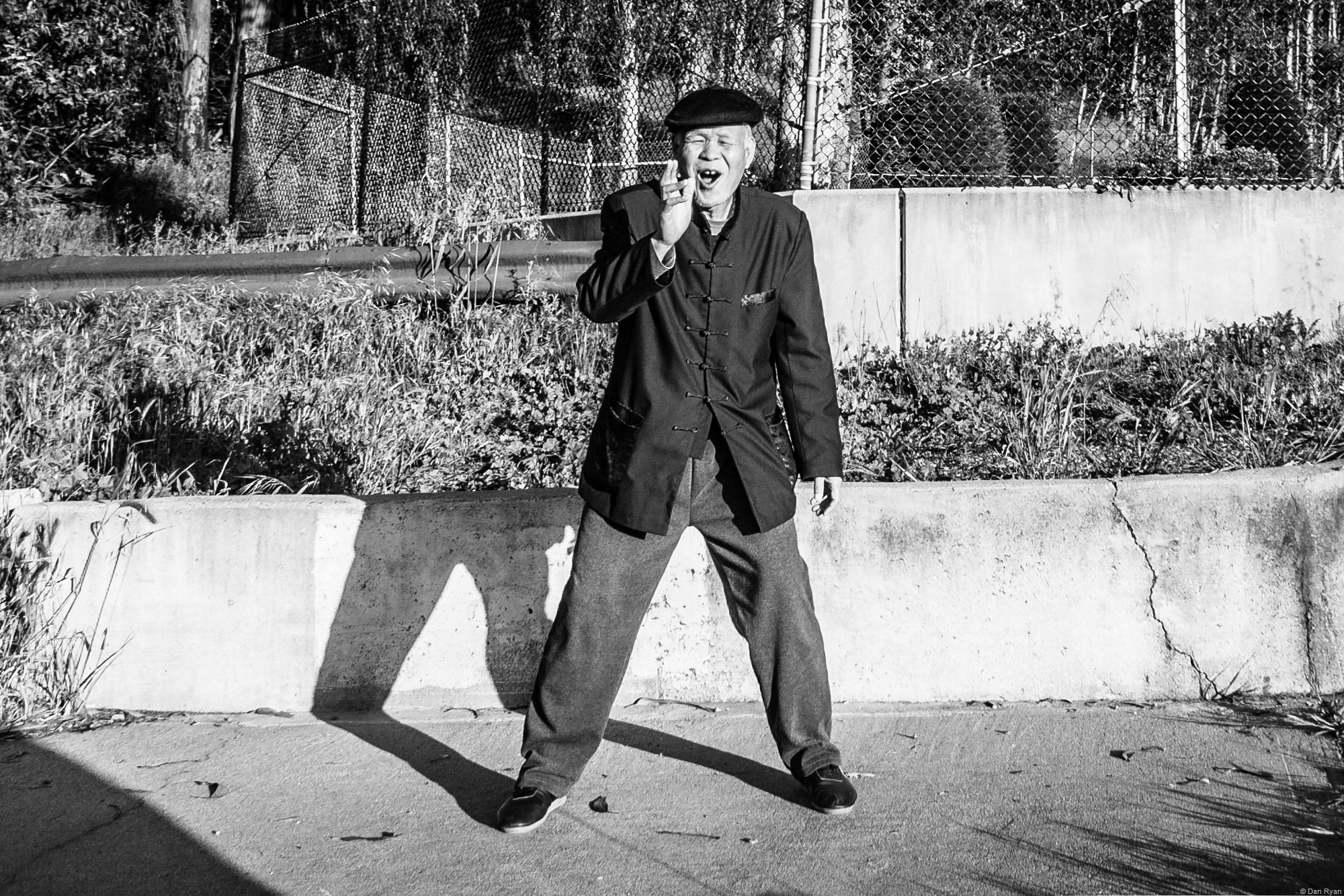 On my way to work this past Monday, I drove past an older man doing t‘ai-chi exercise by the side of a particularly busy street in South San Francisco. I broke several traffic laws turning my car around so that I could pull up to the curb in front of him to take a photograph. Luckily, I got to him just in time to capture this exuberant expression.