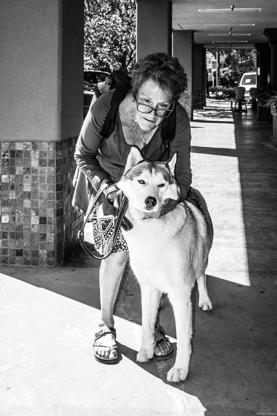 Edgar the relaxed Malamute, with a nice lady who coincidentally is the mother-in-law of a friend of mine. The lady rescued Edgar from a Malamute breeder who beat him the first two years of his life and kept him in a small cage with ten other dogs.